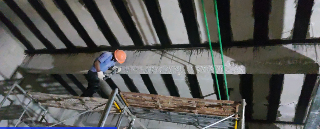 晉寧吾悅廣場(chǎng)四層板面和板底碳布粘貼